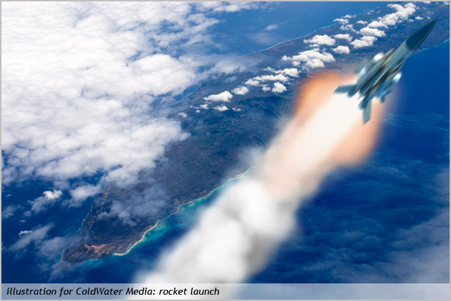 The rocket speeds through the atmosphere, rapidly heading on its mission into space.